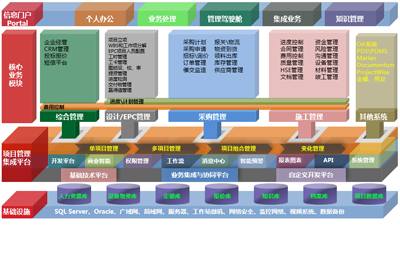 施工總承包企業解決方案構成1、綜合項目管理系統方案 施工總承包企業項目管理信息系統要覆蓋進度、成本、合同、物資、設備、質量、安全、風險管理內容。 2、工程設計管理系統 可以實現對工程圖紙的全生命周期管理,包括建立設計人員個人圖檔資料庫、圖紙添加上傳,圖簽和圖紙編目管理,實現數據庫與項目圖紙圖簽信息的雙向流動,圖紙設校審流程審批事務管理,已完成圖紙歸檔和出圖提交。 "項目打包"可以將項目已上傳的圖紙按項目樹結構打包輸出,方便圖紙提交及光盤備份。同時提供"歷史版本"管理,幫助設計人員管理各階段設計成果。 3、人力資源管理系統 針對集團公司的人力資源進行統一管理。主要包括:招聘管理、員工檔案管理、薪酬福利管理、考勤管理、人事管理、合同管理、薪資管理、培訓管理、績效管理等。 4、檔案資料管理系統 結合檔案資料管理的有關規定,具備檔案分類目錄建立、各類文檔資料錄入、項目檔案歸檔、檔案查詢、資料借閱管理等功能; 5、辦公自動化及門戶網站 各部門通過門戶網站登陸內部OA辦公自動化平臺中,維護外部網站數據,控制企業網站信息的顯示,使企業的信息快速及時的在公司網站中更新顯示,保持網站信息的及時更新。 6、決策支持系統 主要面向決策層和有需要的管理層。對項目和管理過程中的動態情況進行跟蹤和報表統計。從各個維度和角度進行數據的挖掘,使領導層能對項目的進度、招投標情況、進度、成本、合同、資金的情況進行跟蹤和查詢。 7、企業知識庫 企業知識庫主要是對企業的定額、企業的規章制度、標準圖集、工程規范、合同范本等進行管理,實現知識資產采集、知識資產傳遞及利用、知識資產創新、教育培訓、效益分析和知識資產的保護等功能,為企業日常管理需要提供支持、借鑒和參考。